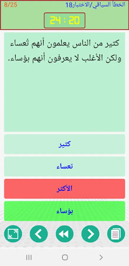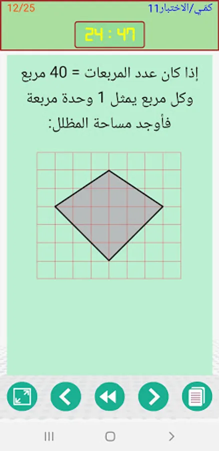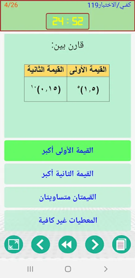10- An interactive interface not available in other applications, with the ability to know the time spent in each test and the percentage of your score at the end of each test.