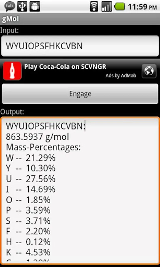 DO NOT DOWNLOAD! New version available. Search android Market for "gMol--Molar Mass Tool" or just click to see this publisher's other apps.