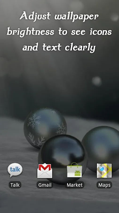Rest assured that this Live Wallpaper won't annoy you by making icons and text on top of it hard to see. Simply set the wallpaper brightness on the settings screen to your own liking.