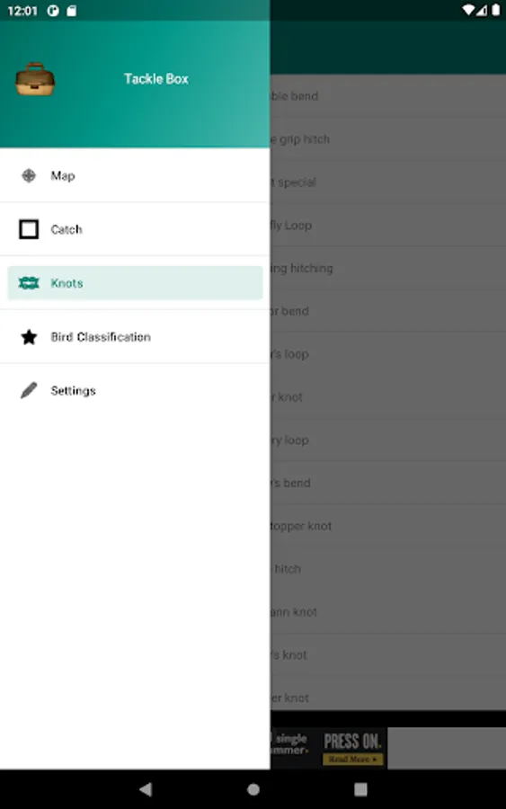 Tackle Box is an app for cataloging catches for fishing, hunting, and birdwatching mostly. So next time you have the catch of the day, youll have all the information to go along with it. There is sharing, you can set a course through google navigator by foot, by car, or on bike to any of the destinations where you recorded a catch. You can switch between map types and you can also enable proximity alerts so when you are within a specified distance of one of your stored catches you will be alerted, perfect for finding that tree stand or approaching a nest and there are also 100 knots that you can flip through that could come in handy and bird classification where you pick a picture of a bird and AI will tell you what kind of bird it is out of 965 possible bird type predictions.  You will be on top of your game with this.