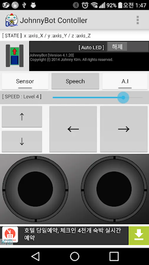 johnnyBot Control method can greatly Manual Mode, Sensor Mode, Artificial Intelligence Mode, Speech recognition Mode.
