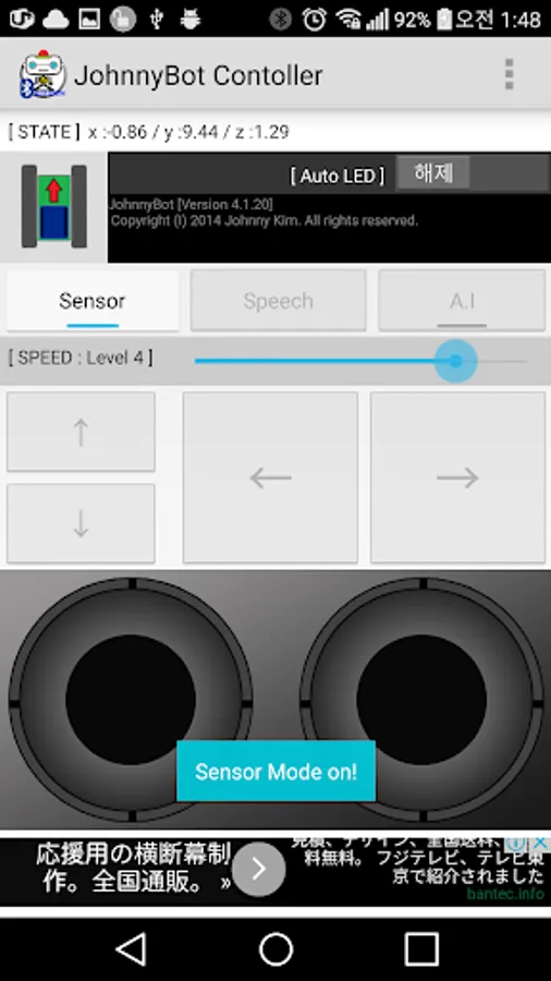 Then add the Device of Sensor and JohnnyBot Handle of fun and enjoyment you install the Controller and by the Sensor Mode, Bluetooth communications are disrupted and Artificial Intelligence Mode is used for self-exploration.