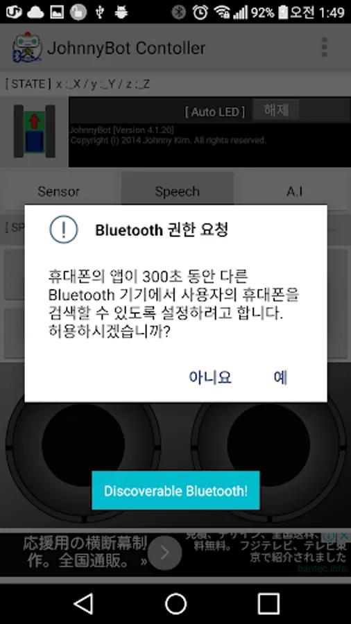In Android Device that supports Bluetooth App that allows anyone to easily RemoteControl the johnnyBot.