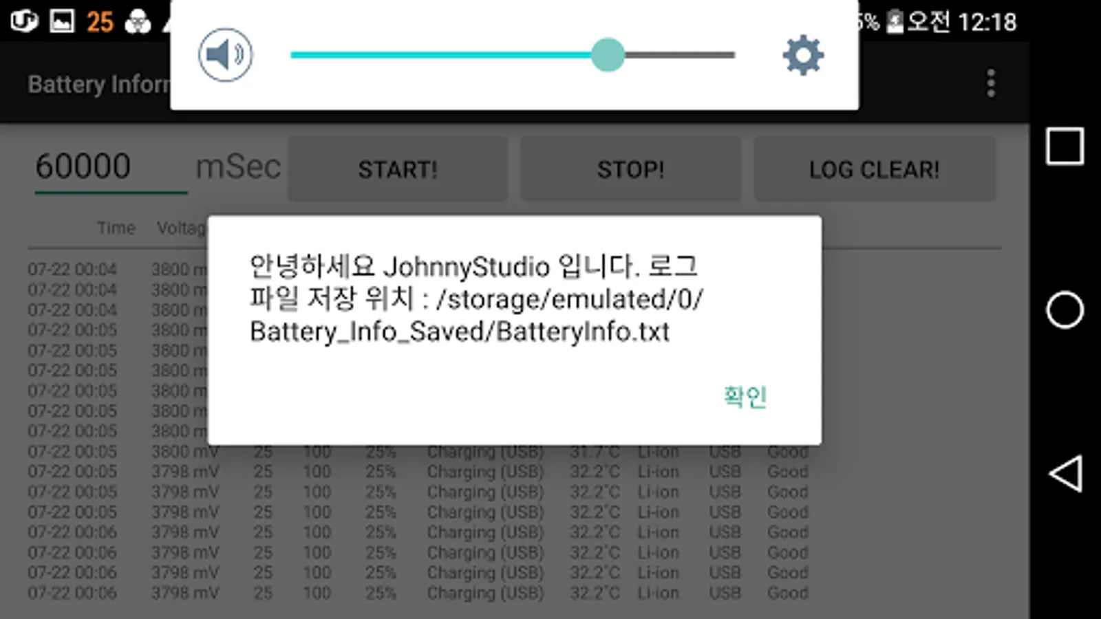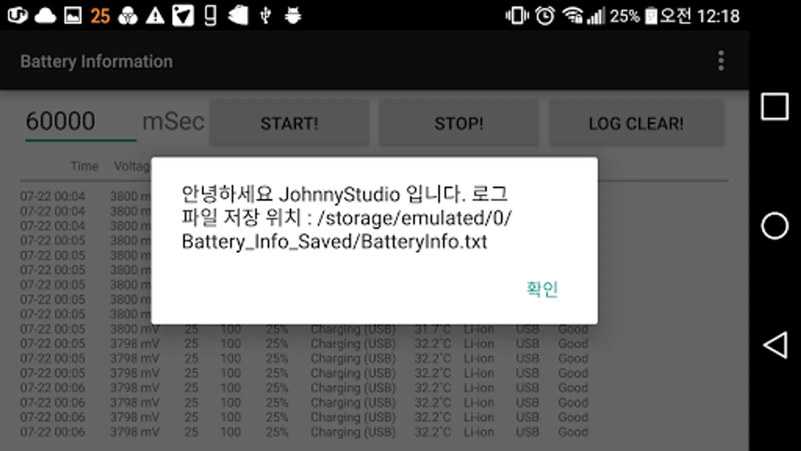 - Logging File Path: /storate/emulated/0/Battery_info_Saved/BatteryInfo.txt