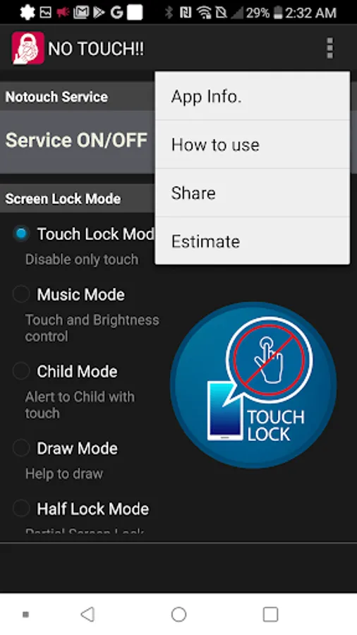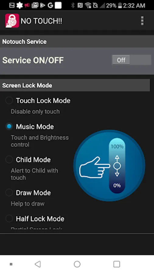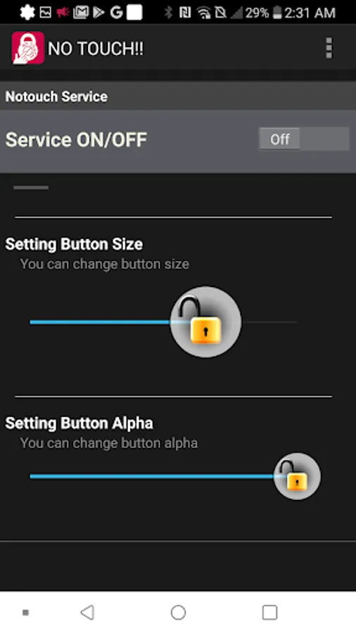 1.After running the NO TOUCH app, the top service switch is ON!!