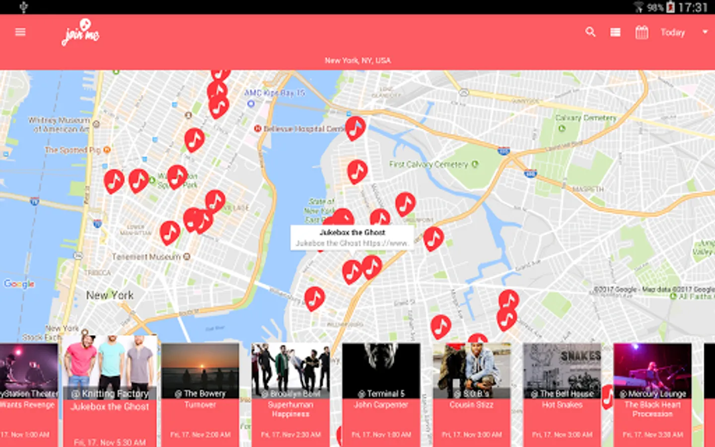 JoinMe is the new and unique way to discover new events and concerts around the world. The app will try and match your music profile to events near you or location you have chosen and will suggest events in clubs or places visited by like-minded people.