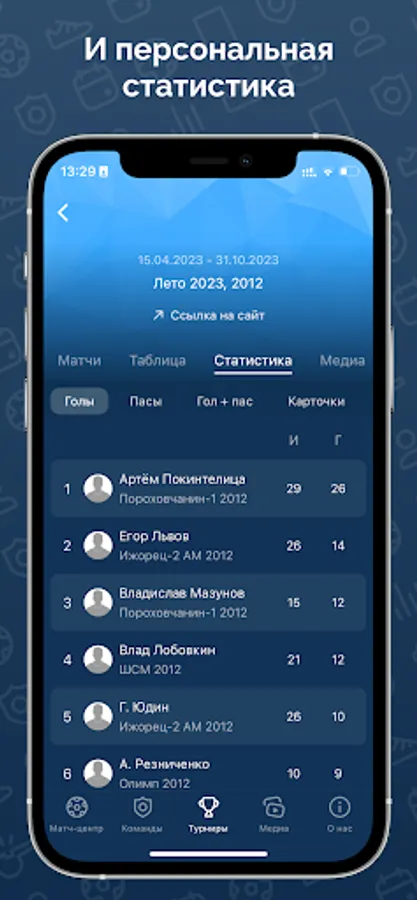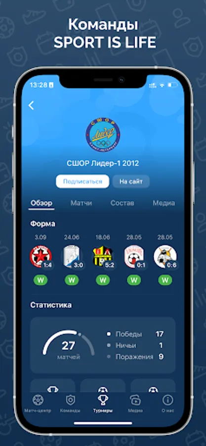 Stay up to date with the events of the SPORT IS LIFE tournament life: match calendar and results, detailed match reports, always up-to-date standings and personal statistics.