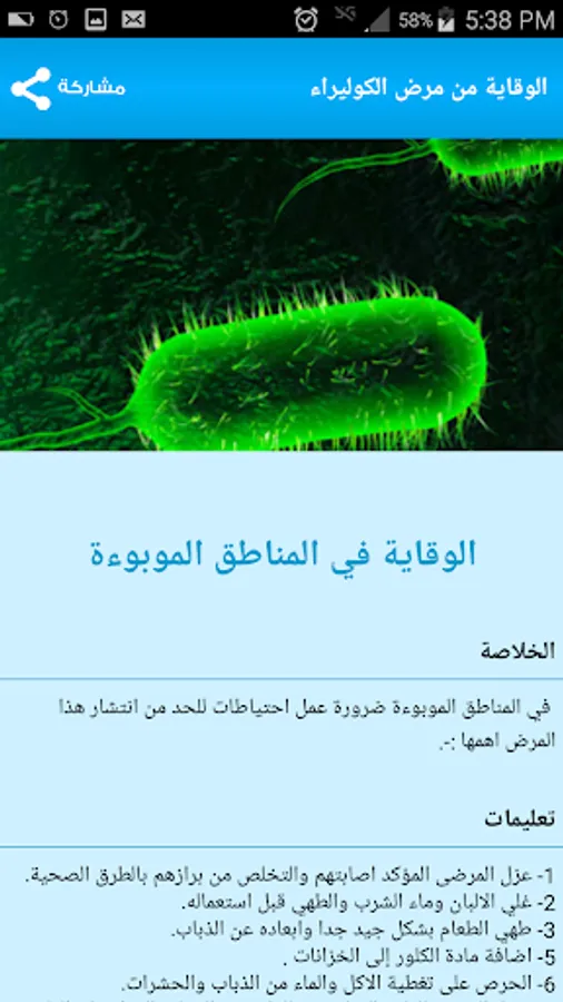 Is an application that broadcast awareness by explaining methods of prevention of cholera disease and reduce its spread by educating communities about the following: -