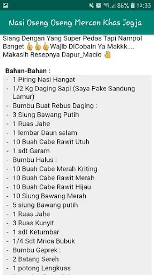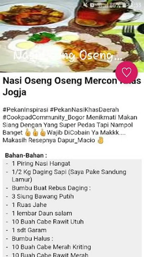 The Latest Indonesian Complete Food Recipes are the latest and complete collection of Original Indonesian Cuisine recipes. in this application there are also special foods of Aceh, Jogja, Padang, Papua and many more.