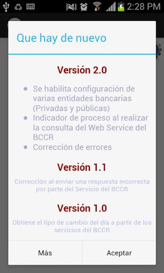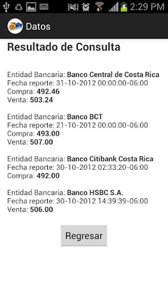 This app get the Dollar Exchange Rate using the Web Service provided by Banco Central de Costa Rica (BCCR).. Now you can check the exchange rate that is reported by the financial instutions in Costa Rica