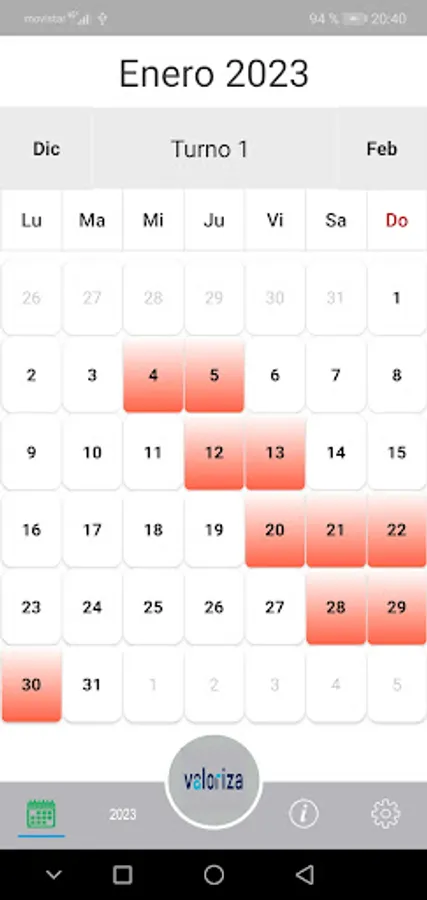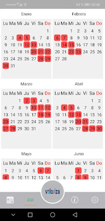 Calendar for the company Valoriza for the collection of urban waste for the city of Barcelona for the year 2023.