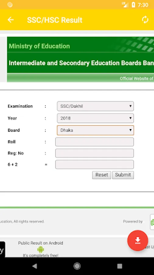 This app helps you to get Educational Results. We try to provide you the latest news or information on the educational result. This app works very fast. It's a great app who really love to find their exam results from one application. Here you can check your PSC, JSC, SSC, HSC, Degree, Honors , Masters, Professional etc exam results of Bangladesh.