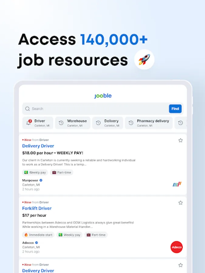 Discover new job opportunities, explore companies, and kickstart your career with the Jooble Job Search App.