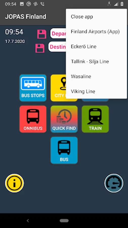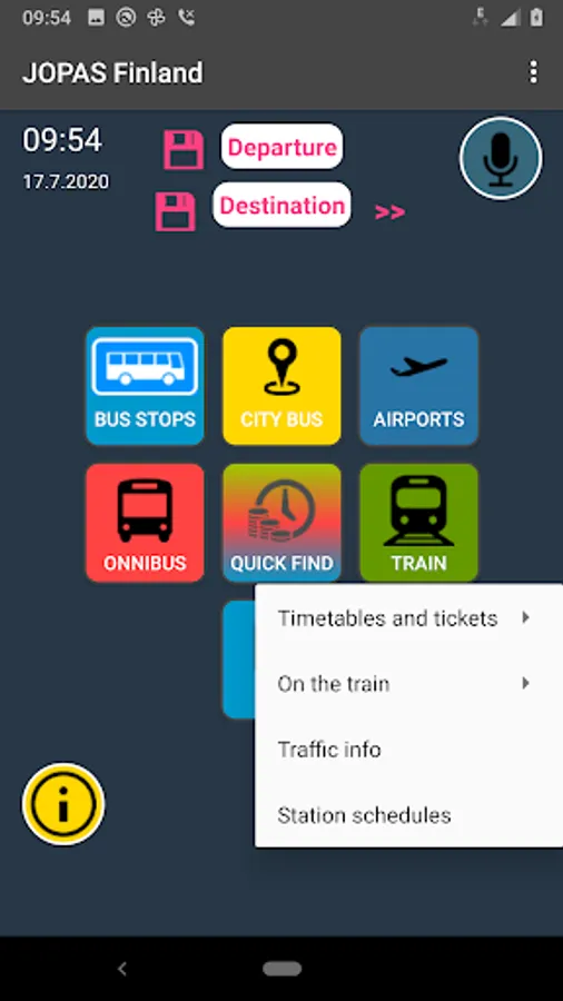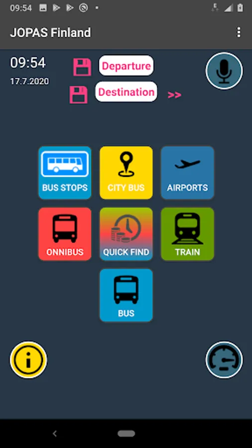 With this simple Public Transport Guide you can easily see the timetables for long-distance buses and trains, the timetables for public transport in Finland's major cities, book tickets and compare travel rates. You can also see live arrival and departure times for train stations. The route guides will guide you to the nearest stop using GPS. The application uses ready-made web pages to schedule and other data. The application also works with voice commands by saying the city name or travel format.