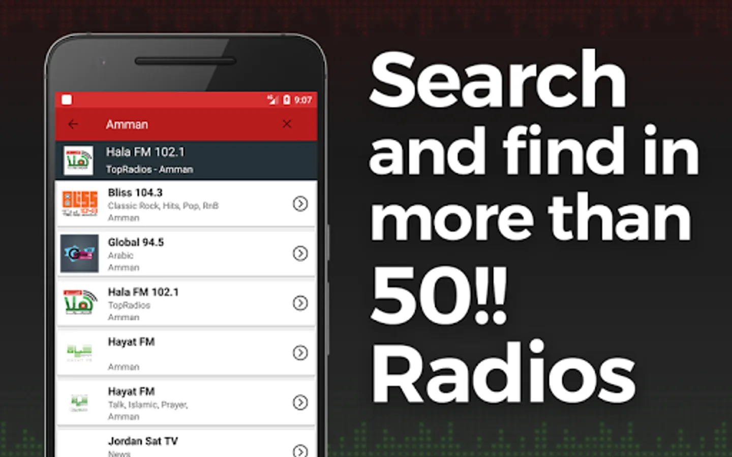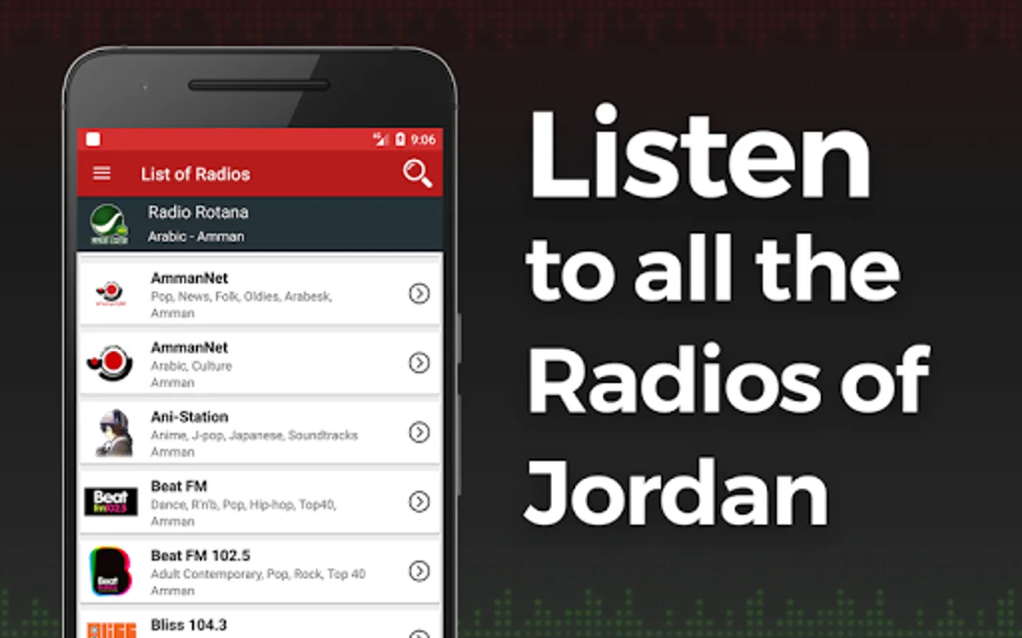 Looking for an app with all the radios in Jordan? Don't waste your time!! You've found the Radio App you were looking for, listen online the best radio stations of Jordan, easily and for Free, with all types of music, news, sports, ...