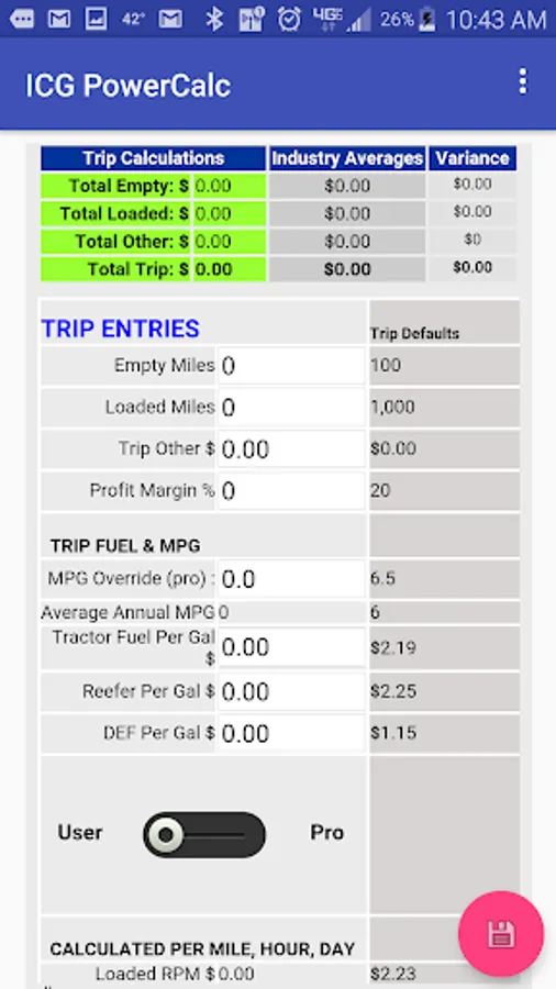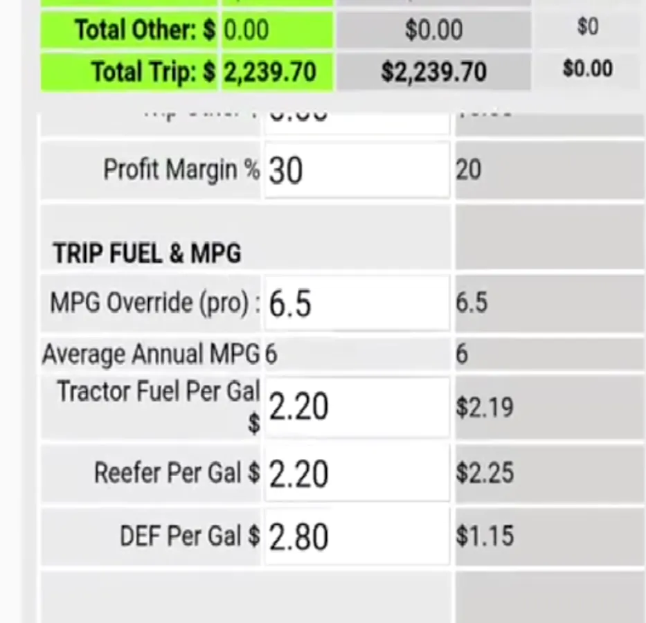 Users enter their business expenses and other fundamentals. The application quickly calculates costs to bid for loads based on the user's own business numbers.
