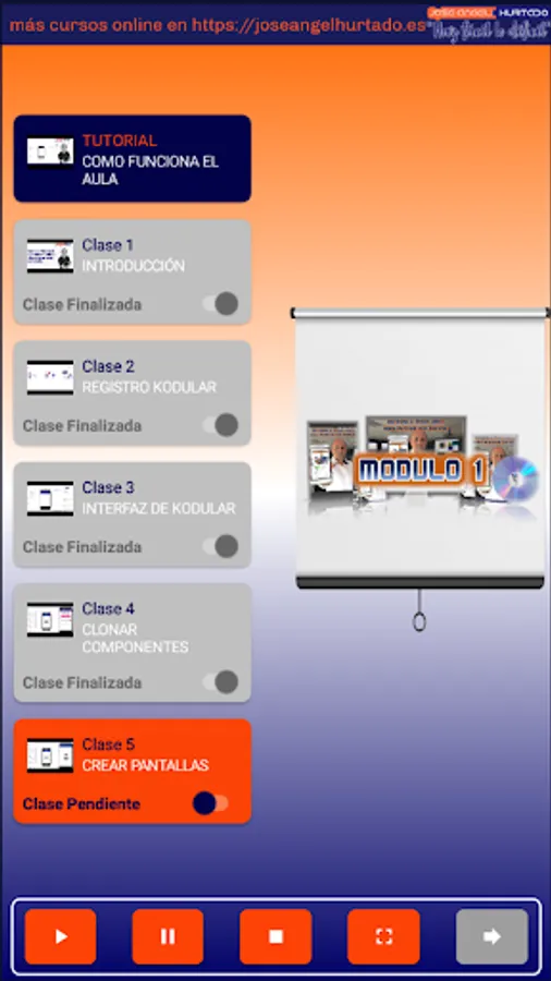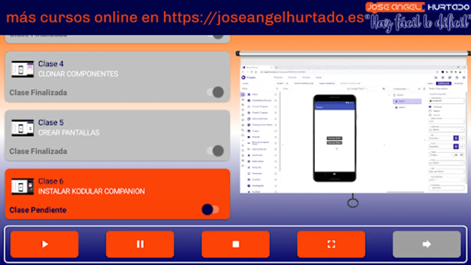Academia José Angel Hurtado includes in this app a DEMO of the online course "Learn to create Android apps with Kodular", in this trial version you can access Module 1 of the course that includes the following classes: