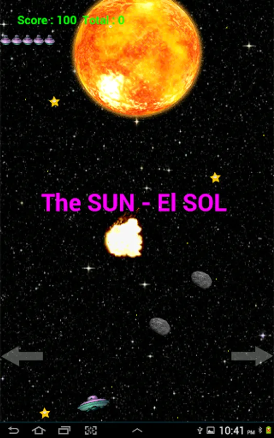Adventure in the Milk Way is a space adventure where you must travel the Milky Way and know each of the planets that make it up, but this adventure is full of challenges and dangers, since you must face asteroids, and enemy ships. Your ship has Blaster V5 rockets that automatically fire when they detect the presence of asteroids and enemy ships. In your tour you can collect the space stars that give you additional points and allow you to increase your five lives with the accounts, to finish the mission. At the end of each tour you must face the ship of the great boss that will prevent you from reaching your destination. Good luck in your mission commander ...