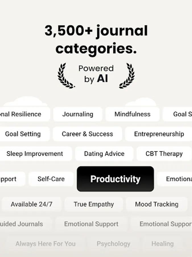 * Books: With an extensive library of over 3,500 self growth books, you can learn from and journal about the key ideas from any book you can think of. Bounce ideas, increase productivity and uncover new insights to help you achieve your goals.
