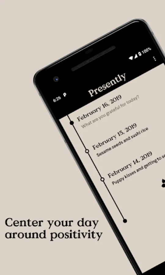 Presently is 100% free and ad free. All of your entries stay on your device and in your control.