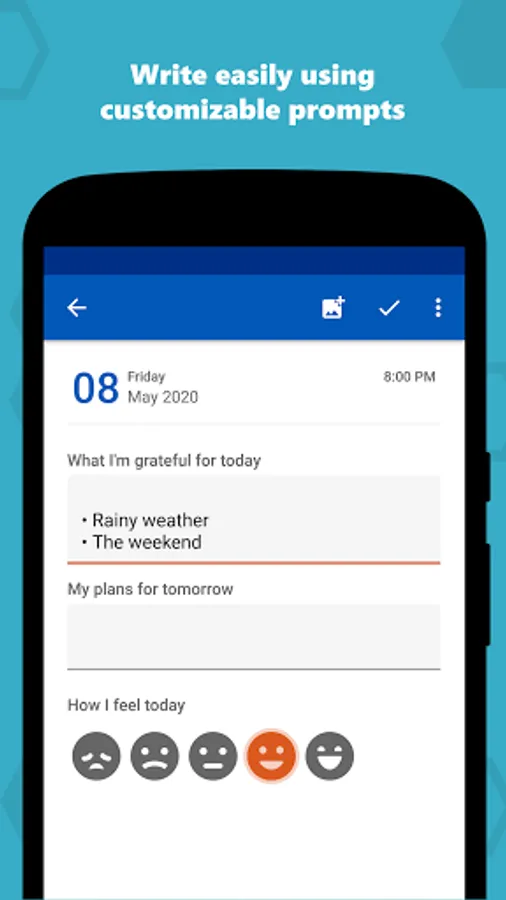 Flexible Journal makes a great five minute journal. Its custom prompts make it so you can quickly write about your gratitude, mindfulness, and daily chores with ease. Custom questions make it easy to focus on exactly what you want. For example, write about gratitude by just answering a few gratitude prompt questions like ‘What am I grateful for today’ and ‘What am I excited for this week’ or ‘Three good things’. You can easily customize your diary prompt questions to whatever you want. Track your daily progress, and mood quicker than ever