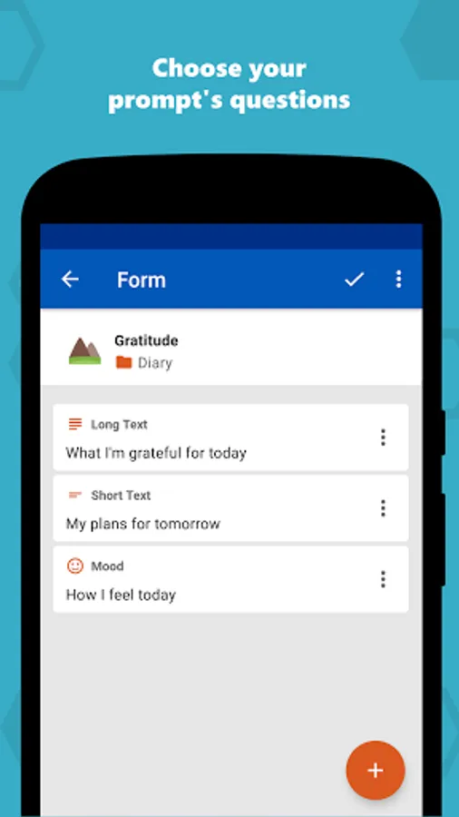 Flexible Journal is a customizable journal that lets you easily write entries using prompts. You can make prompts for tracking your life, health, books, and more all in one multipurpose journal. Prompts help you focus and track exactly what you want. Just choose what questions you want to be asked, and then answer them to write an entry in just a minute