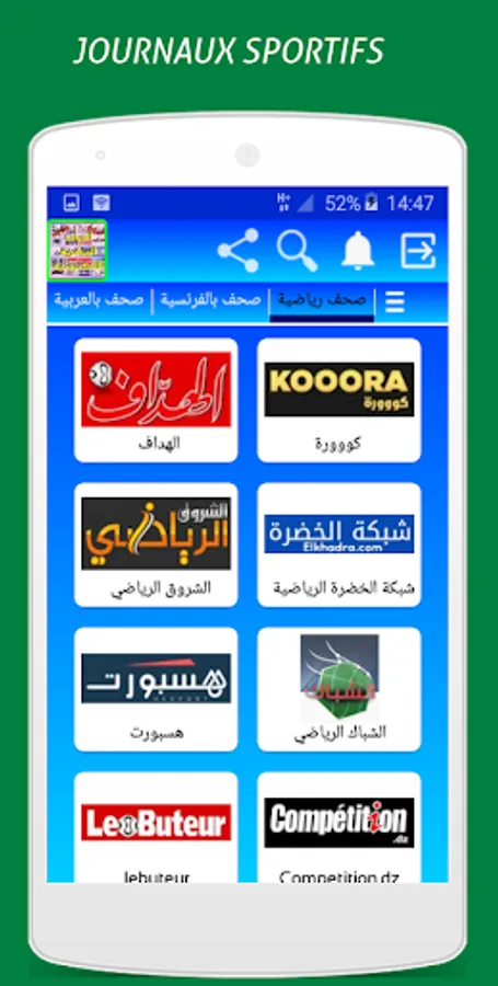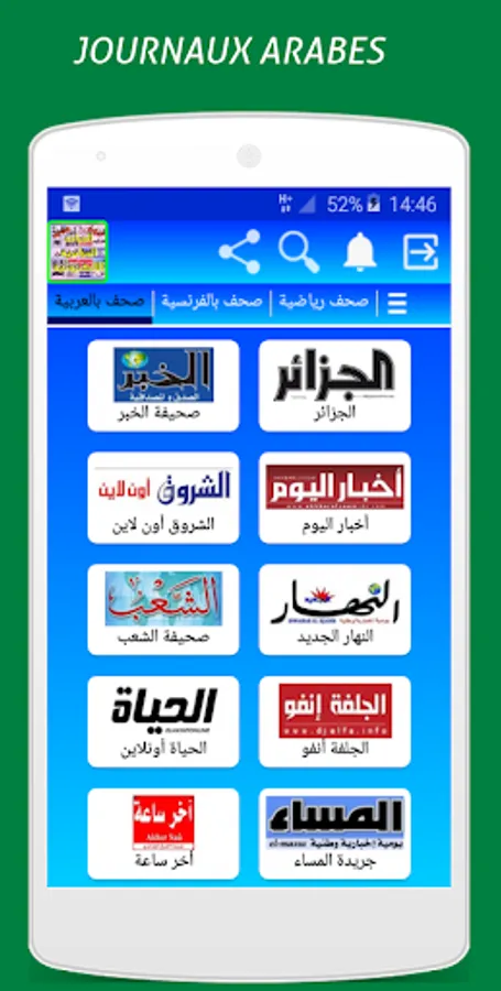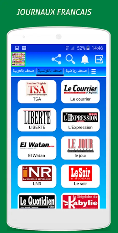 The application "Algerian electronic newspapers" allows you to read newspaper articles