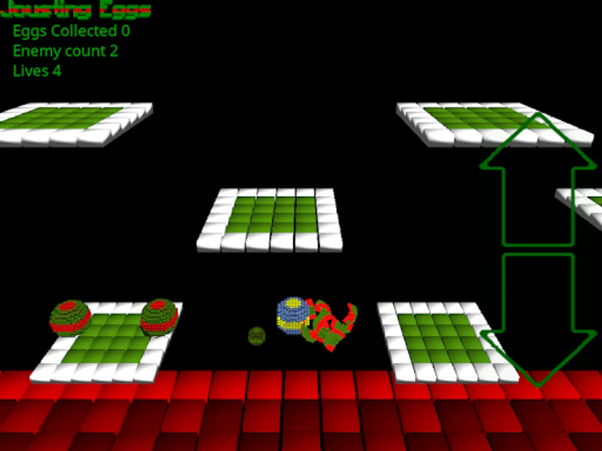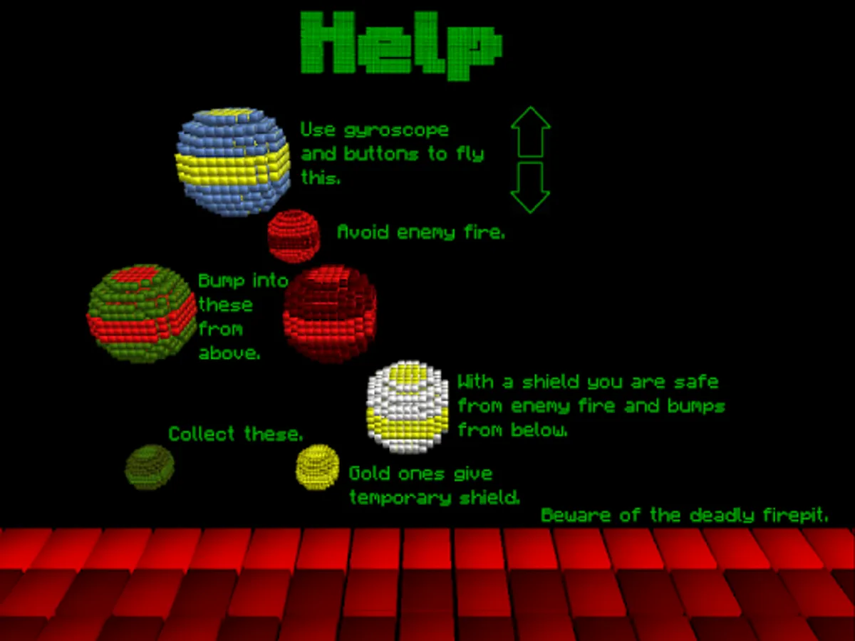 Use the gyroscope to steer and the up and down buttons to move .The idea is to bump into the other eggs being slightly higher and then they break releasing a smaller egg. Collecting these smaller eggs is the aim of the game, once you have collected a set amount you advance to the next level. Beware of the eggs that shoot at ya and the fire pit at the bottom