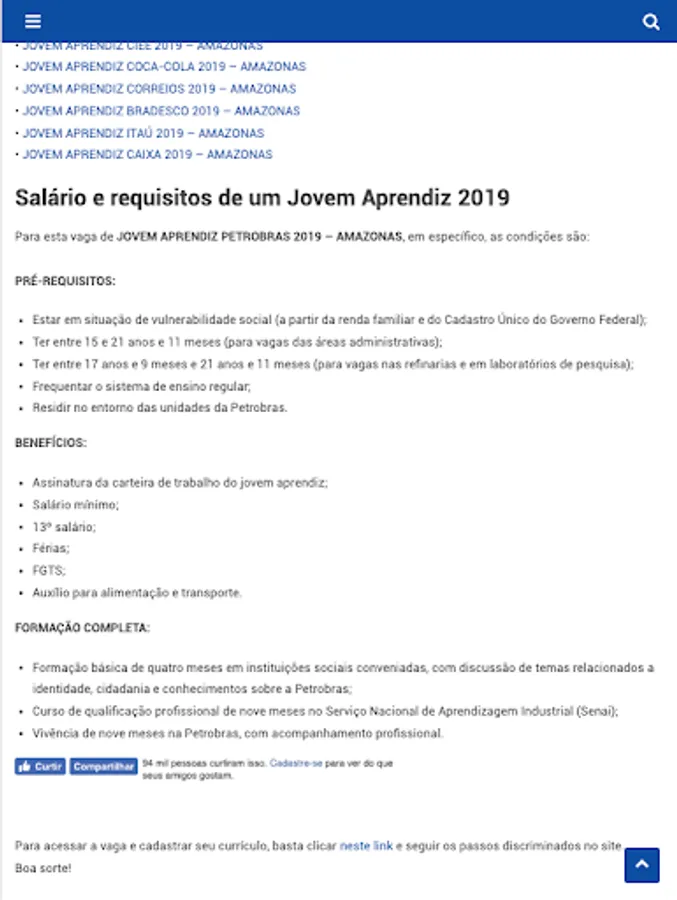 Publication of opportunities as a Young Apprentice in public and private companies in Brazil, as well as the option to register vacancies by companies that will be announced in the detailed fields for this purpose.