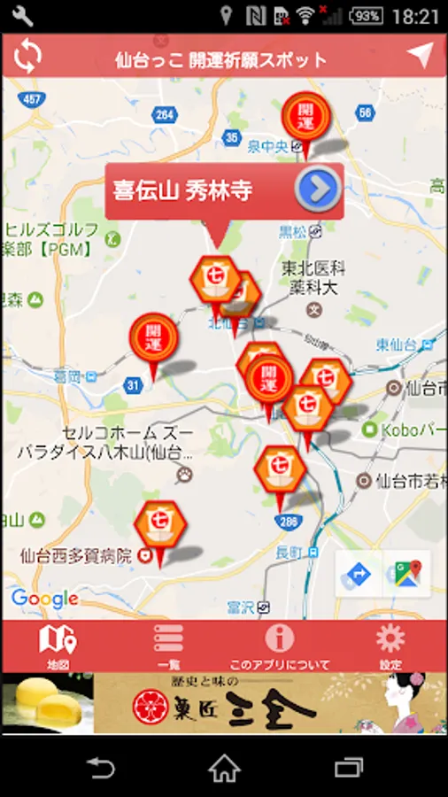It is luck prayer spot and power spot Tour of information of Sendai in app