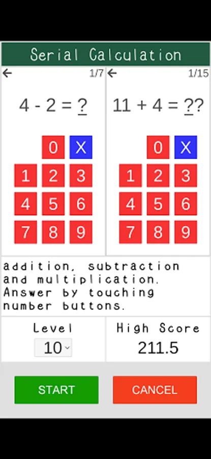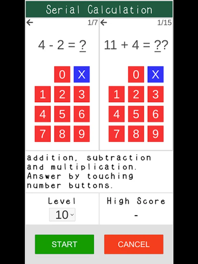 The difficulty of trainings change by your accuracy. If you answer all questions correctly many times, the training level up. You can train your brain by appropriate level trainings.