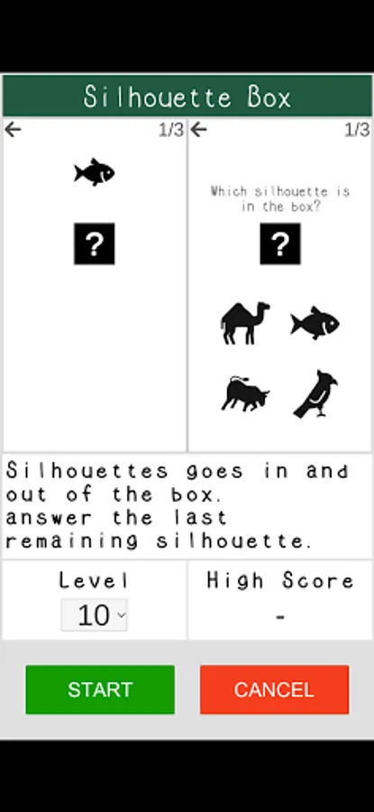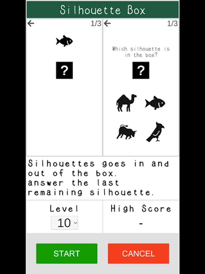 23. Silhouette Box : Silhouettes goes in and out. Select one that remained in the box.