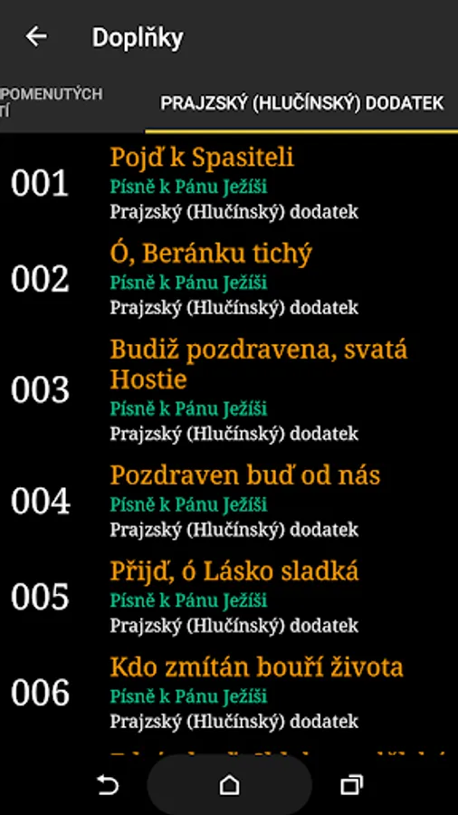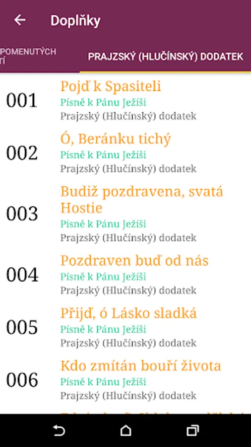 This supplement is added to the application Hymnal songs from Prajzského (Hlučínského) Appendix. To create this add-on data provided by Mr. Muzdrav Machaka. Track titles from this supplement will appear in hymnbooks orange.