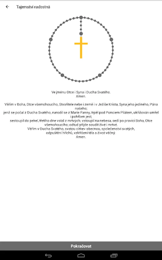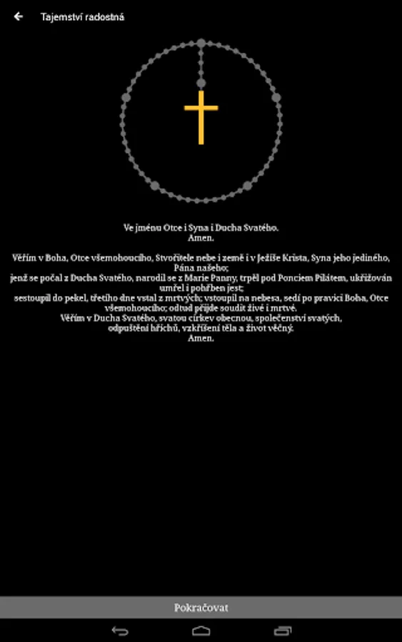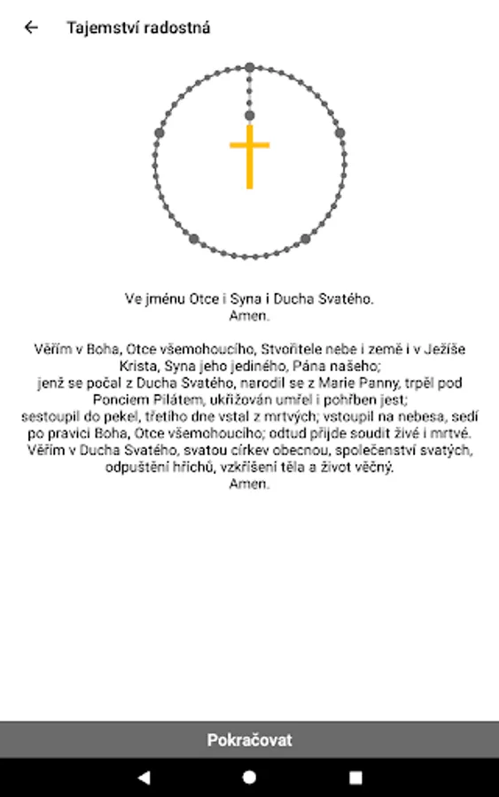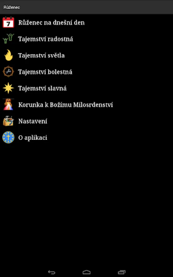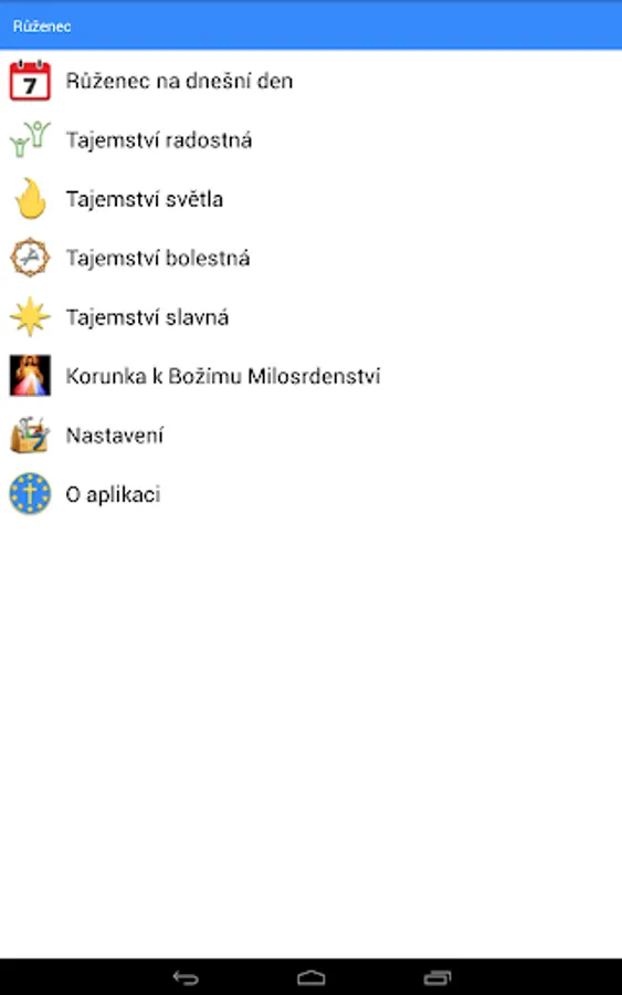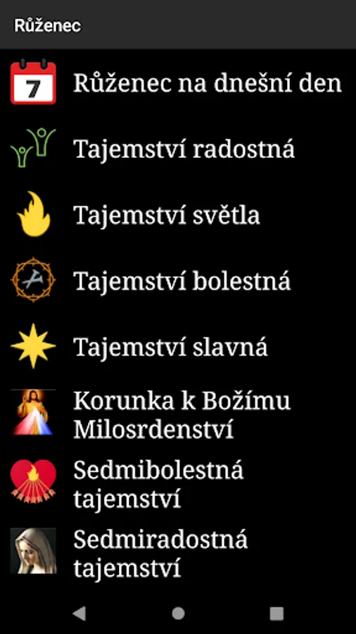 The app contains prayer of the rosary including modifications - mystery joyful, light, painful and famous. It also contains a crown to the Divine Mercy.