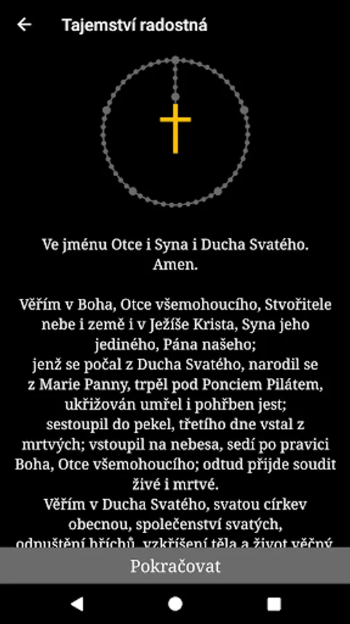 In the app settings, you can set the night mode, prevent the screen from turning off, turn off sounds automatically, and use serif fonts for prayers, or set the midday prayer reminder and your own rosary prayer reminders for the day.