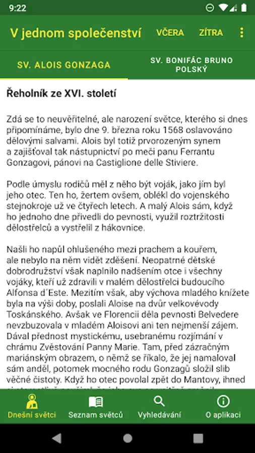 This application is an electronic version of the book In One Community, which contains biographies of saints for each day of the year.