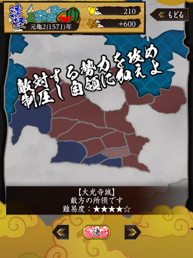 タイムリミットは天正15年(1587年)の冬、豊臣秀吉が陸奥、出羽、関東において一切の私闘を禁ずる「惣無事令」が発令されるまでに津軽地方を統一しましょう。