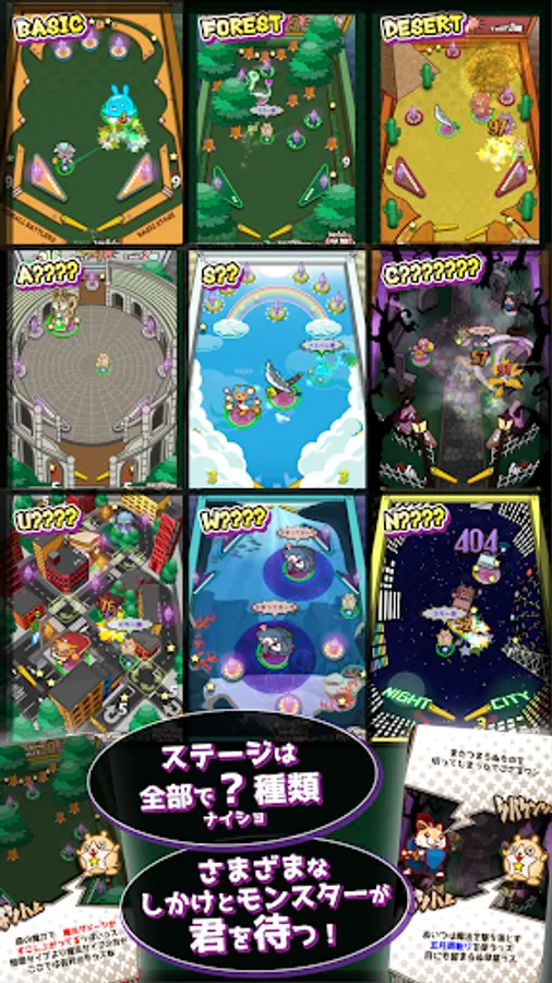 - Various pinball stages like RPG. ex) Forest, Desert, Arena, Sky….