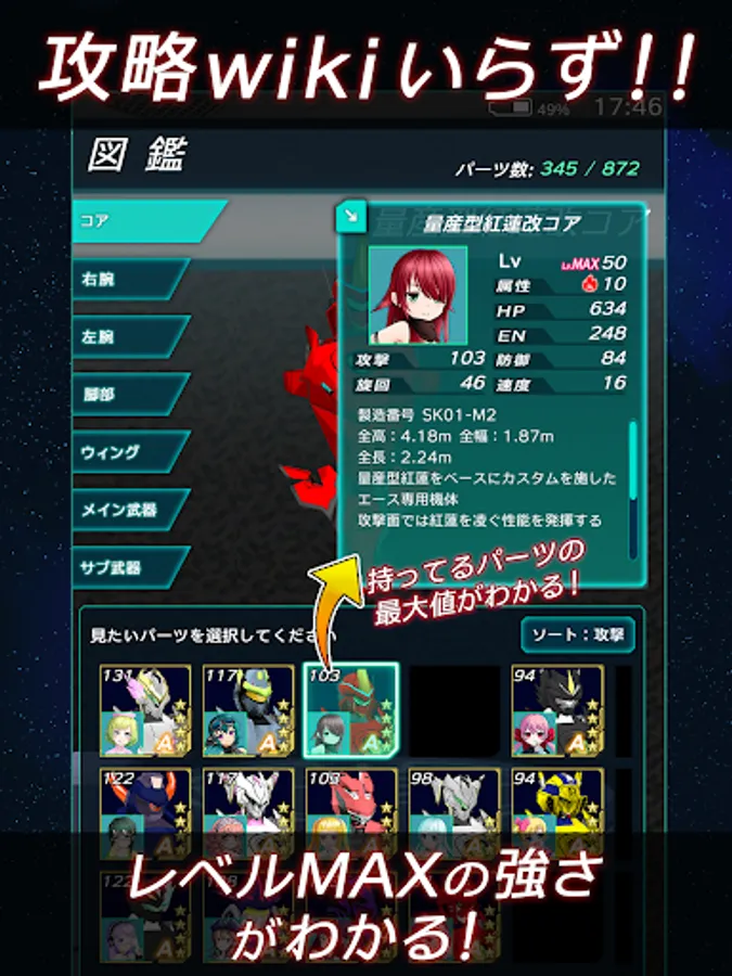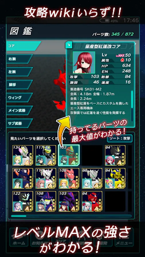 Since you can see the status of the parts you have at LvMax, you can immediately know what to grow!