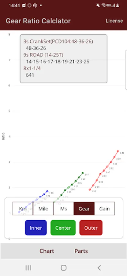 This is a gear ratio calculation application for bicycles with external gearboxes such as road and MTB.