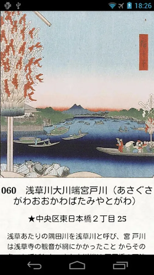 Letting users sort the prints in multiple ways and view each scene’s location on a map of present-day Tokyo, this app presents Hiroshige’s One Hundred Famous Views of Edo in an unprecedented form. It is a must-have for the ukiyo-e enthusiast.