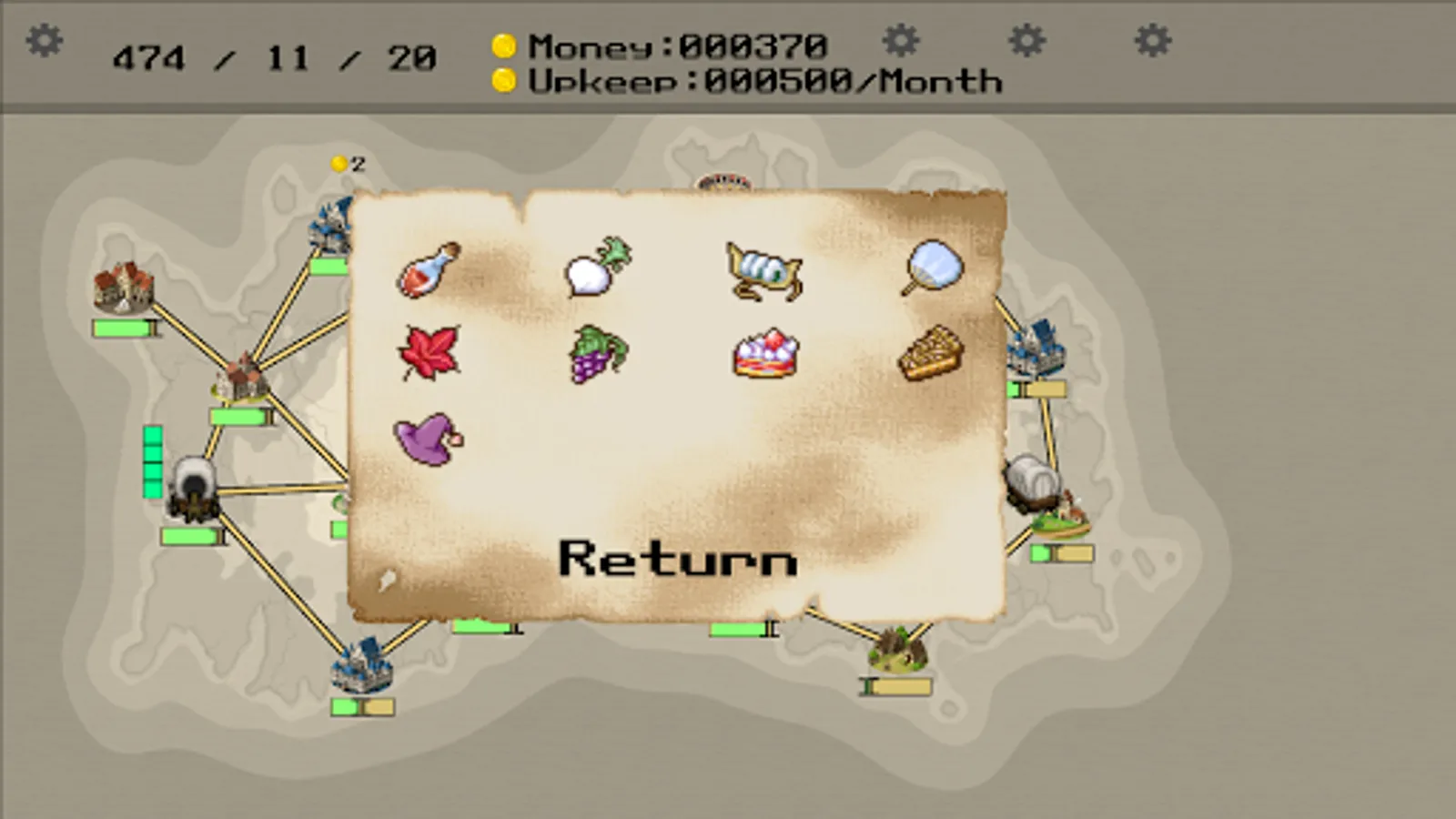 Commerciante is a casual trading game in which traders such as carriages and airships are placed in each town, and "things" are carried from a lot of places to a few places to increase funds.