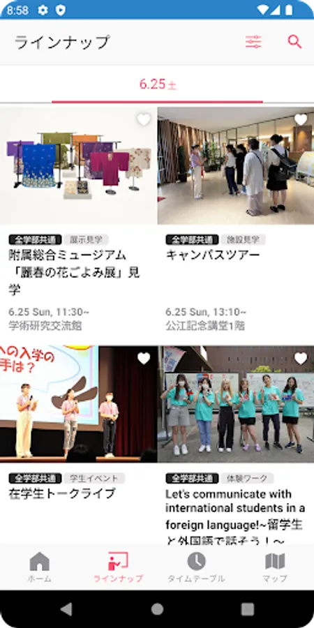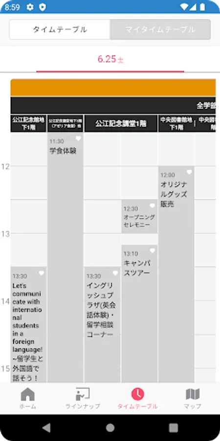 You can check the location of each program and cafeteria on the map linked with GPS, so you can reach your destination without hesitation.