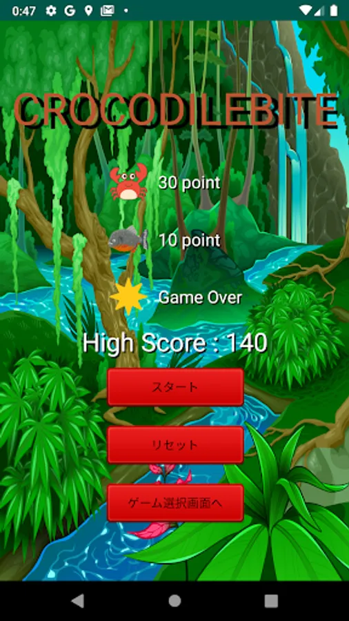 Obstacle avoidance game: This is a game in which you control the crocodile character to avoid obstacles and get the crocodile bait (crab piranha) to earn points.