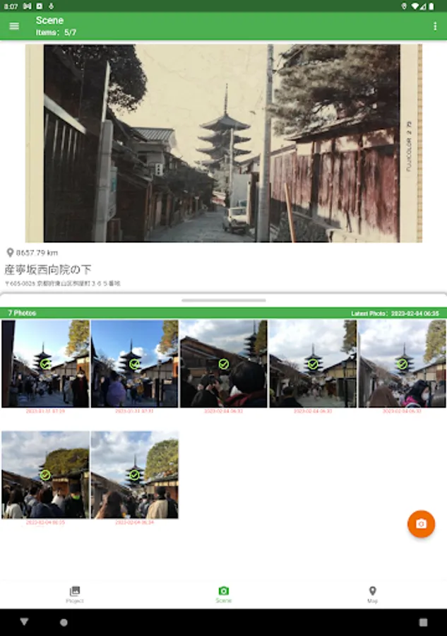 The creator of the project registers scene images, and project participants share them. It is best for events where all participants shoot the same scene with the same composition, and the photos taken can be shared within the app.