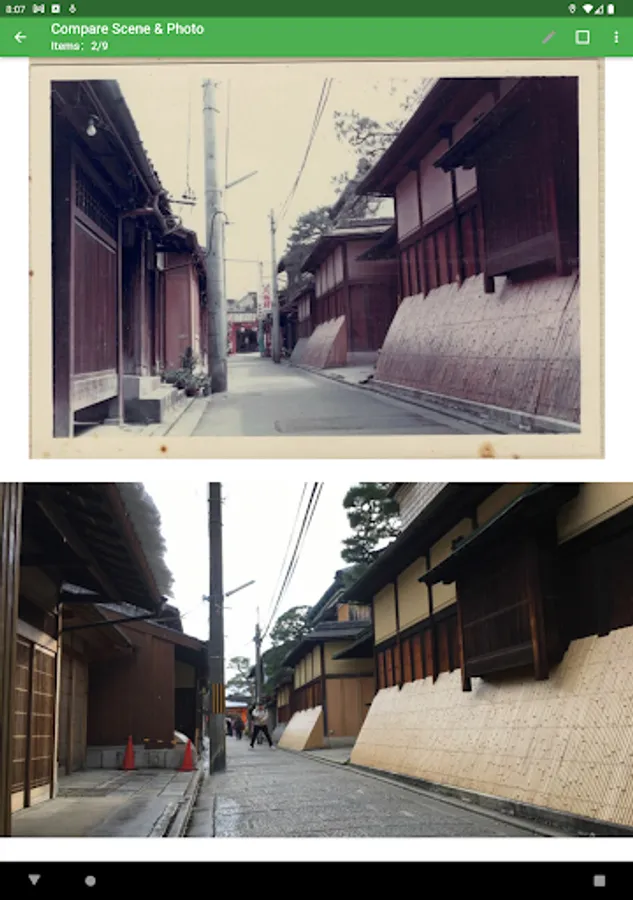 Memorygraph is a camera app that supports same-composition photography by showing the scene image semi-transparently on the viewfinder of a smartphone camera. The same-composition photography is helpful for various purposes, such as now-and-then photography, before-and-after photography, fixed-point photography, pilgrimage photography, etc., depending on how the scene images are selected.