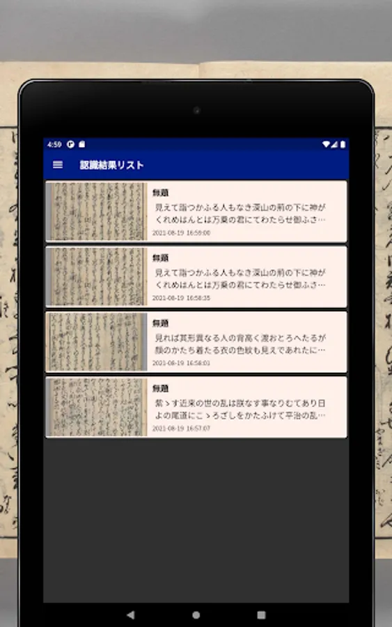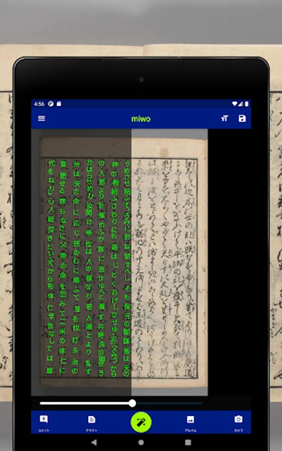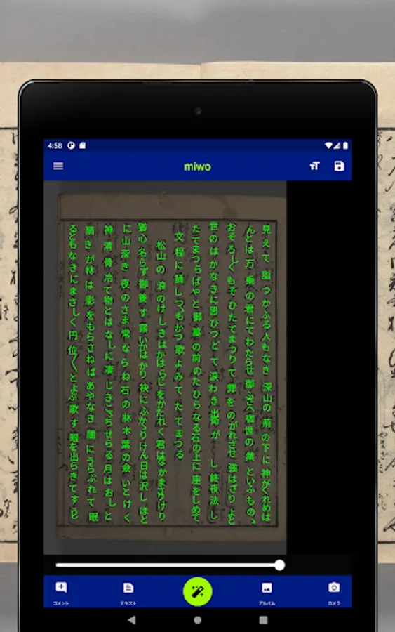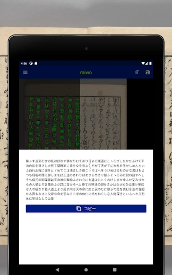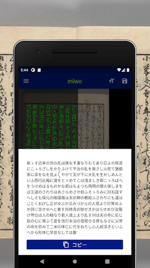 I want to read cursive script materials! But I can't read it! "Mio" is an application that helps such people. If you take a picture of the material with a camera and press a button, AI will convert the junk characters into modern characters. Welcome to the world of cursive script.