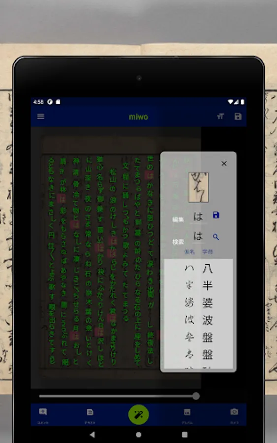 ★ You can search for examples of cursive script from within the app by linking with CODH's cursive script data set.