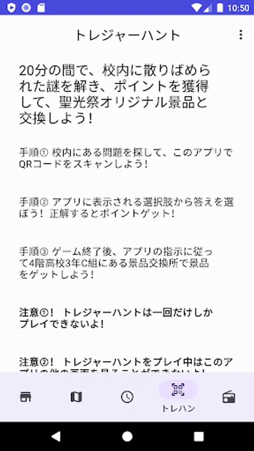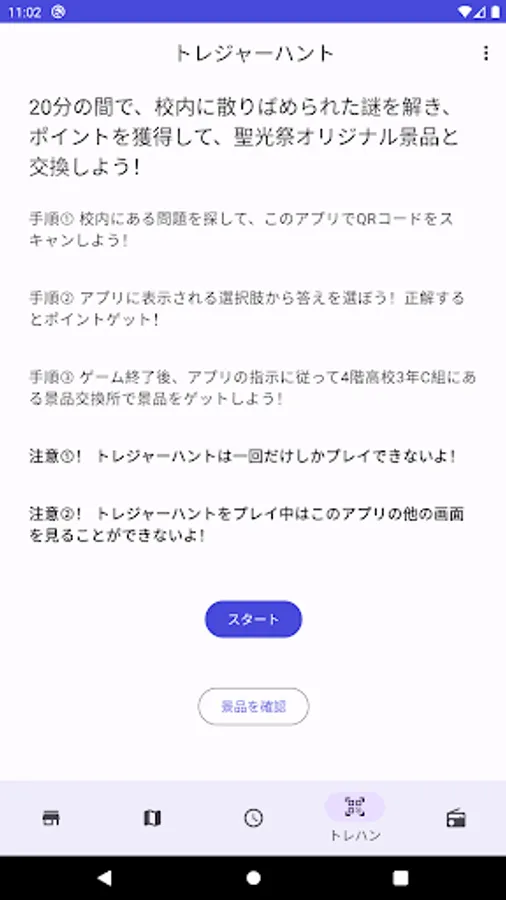 Get points by reading the QR code pasted with a riddle in the school. After the time limit expires, you can exchange for a special prize at the prize exchange. Please join us! !! !!