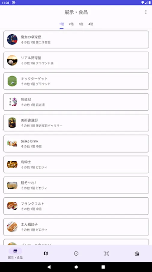 ・ Display a list of exhibition groups and food stores, check details